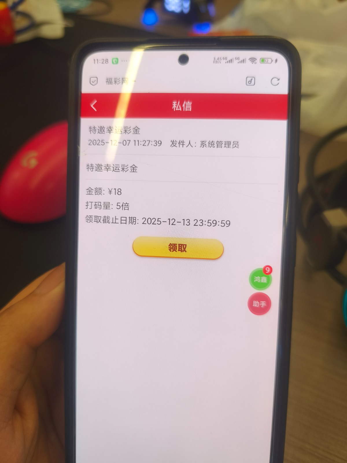 【福彩】站内信领取神秘彩金