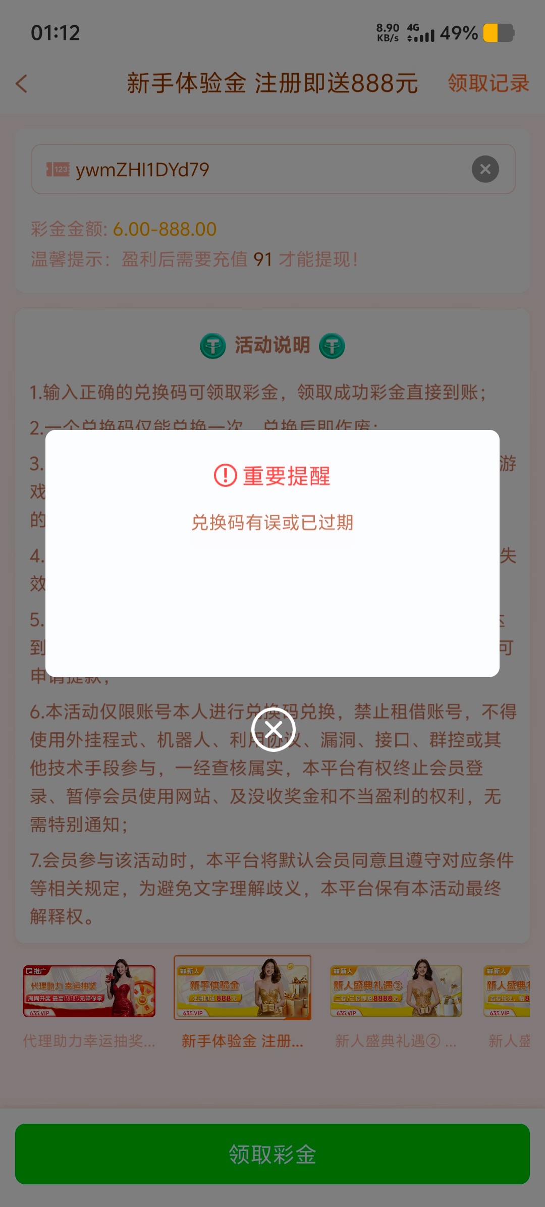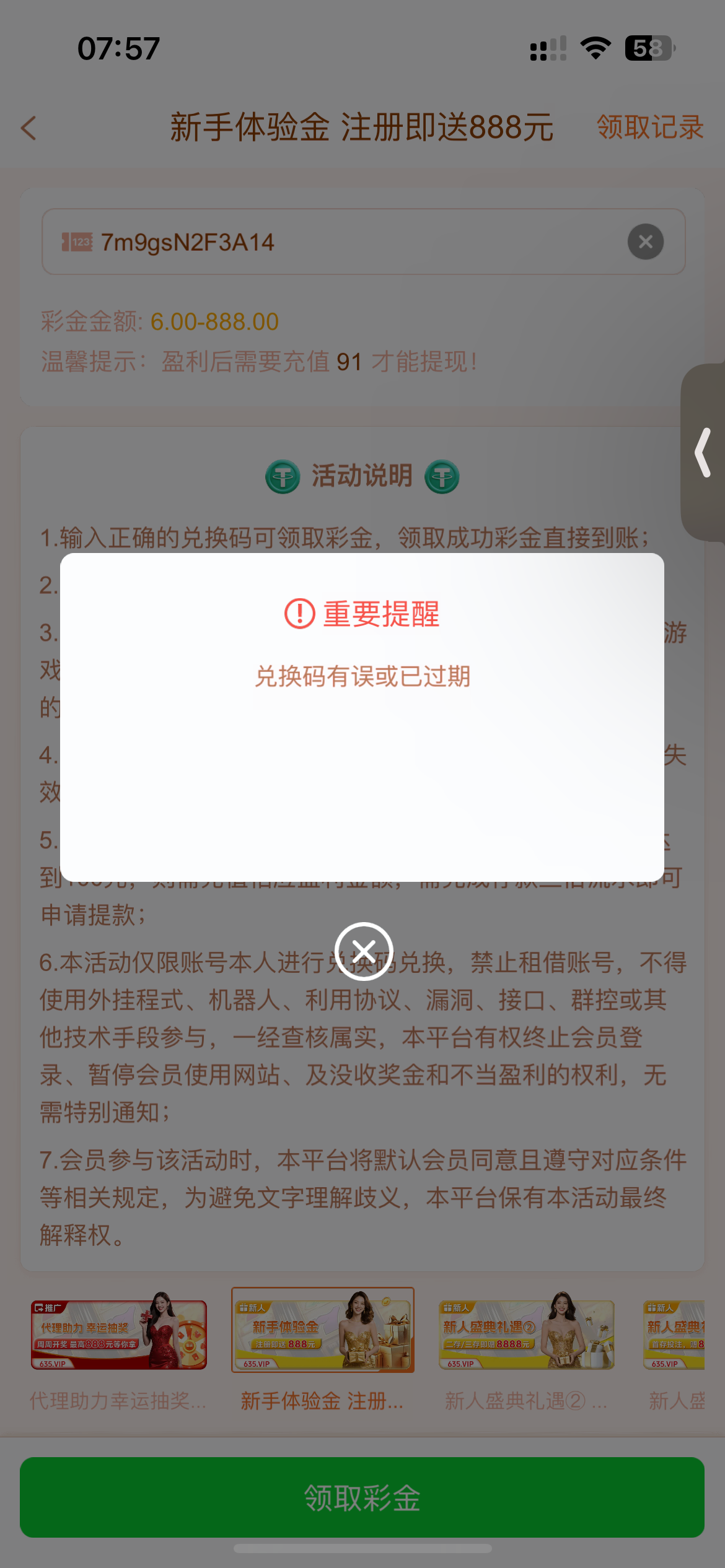 兑换码错的